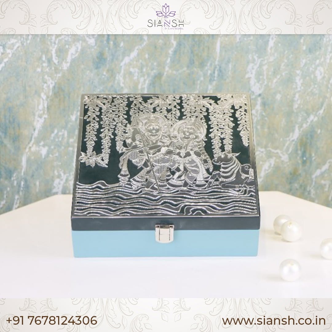 The intricate detailing and devotional symbolism make it a perfect choice for pooja décor, gifting, or storing mithai, dry fruits, jewelry or keepsakes. Each box is elegantly packed in a Swede utility box, making it a refined offering for weddings, anniversaries, spiritual gifts or housewarming ceremonies.