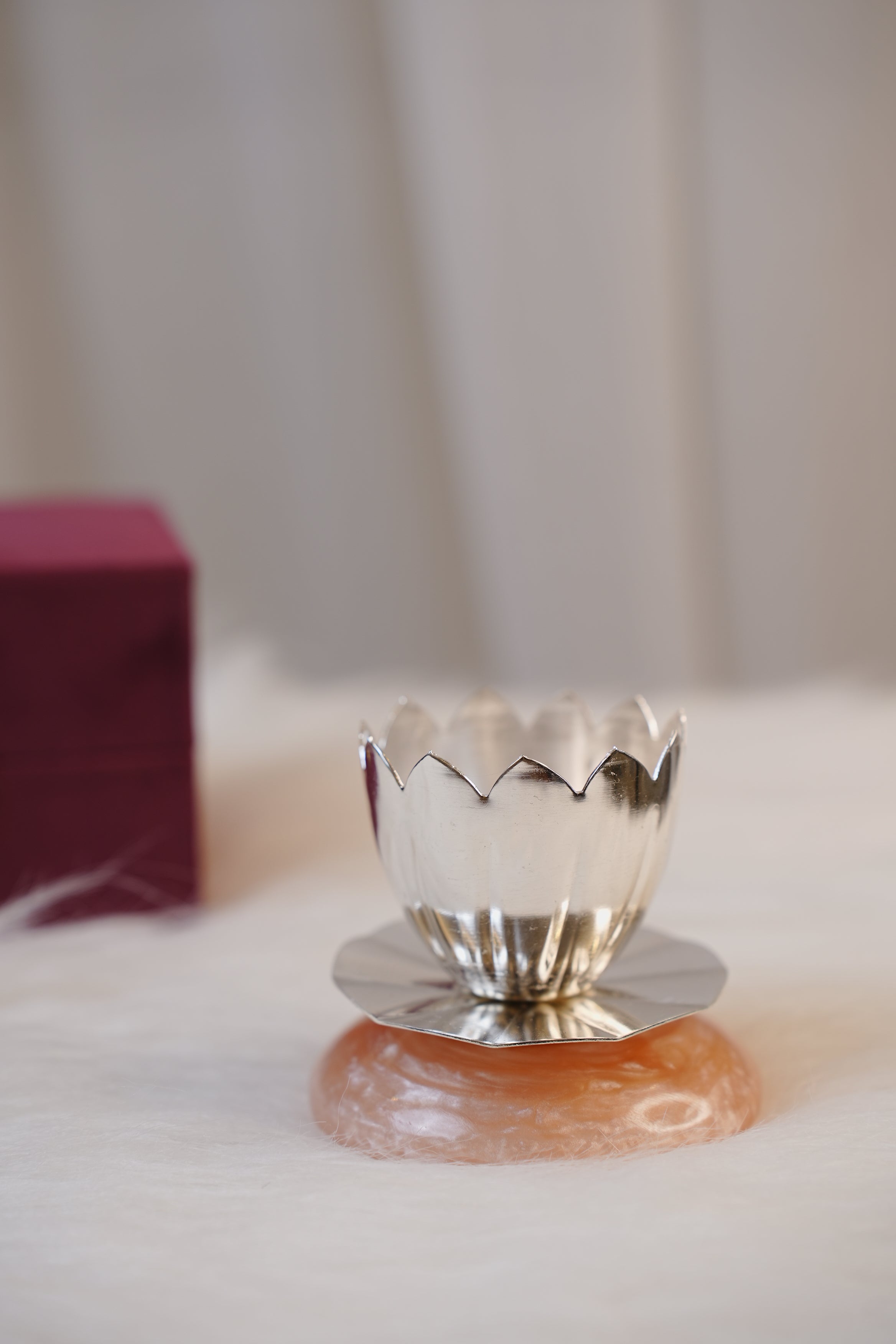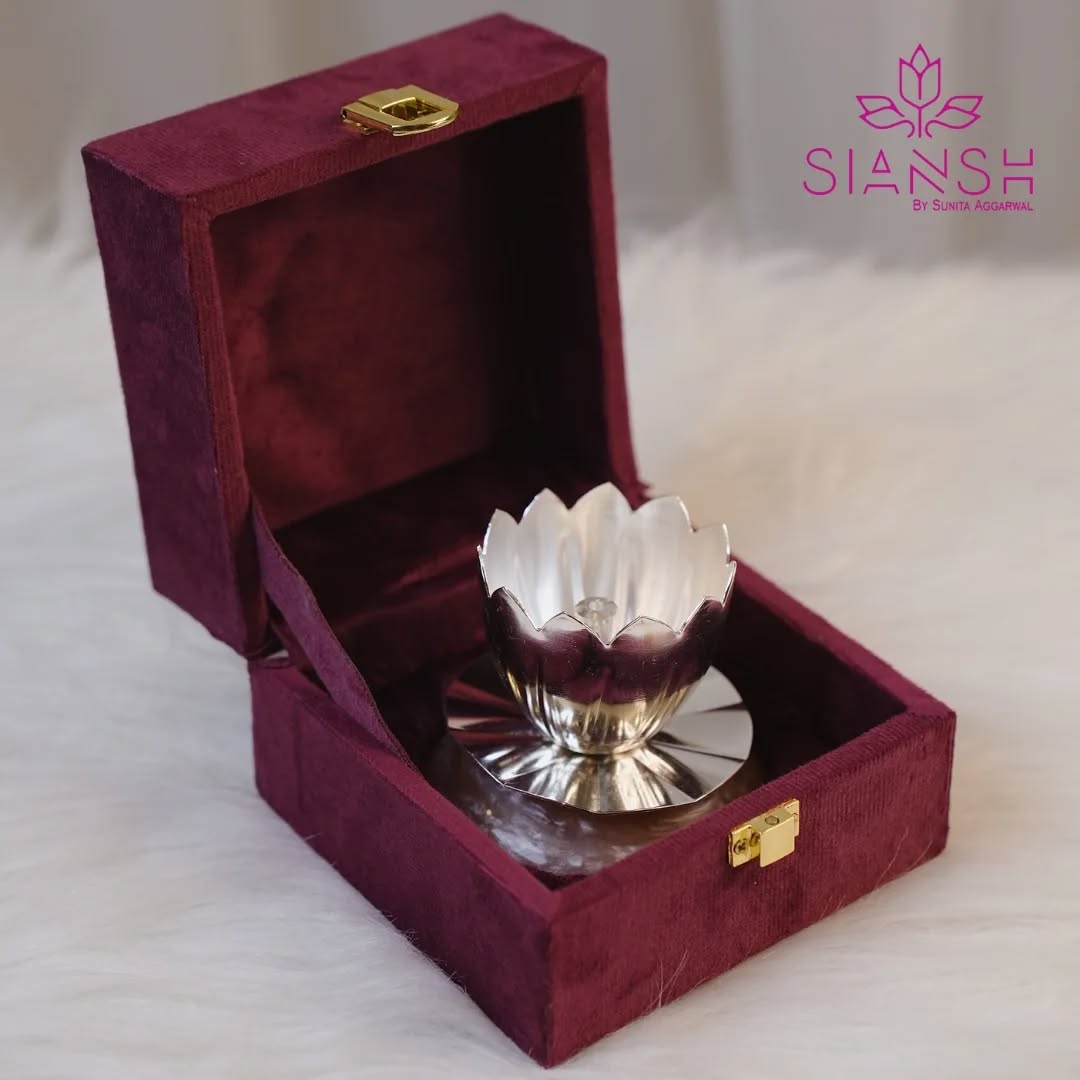 Illuminate your space with this exquisite silver-plated lotus diya, a blend of traditional elegance and modern craftsmanship. Designed to add a spiritual aura to your home, this luxury pooja diya is perfect for daily rituals, festive celebrations, and gifting. The intricate lotus design symbolizes purity and positivity, making it an ideal diwali gift, housewarming present, or return gift for special occasions.