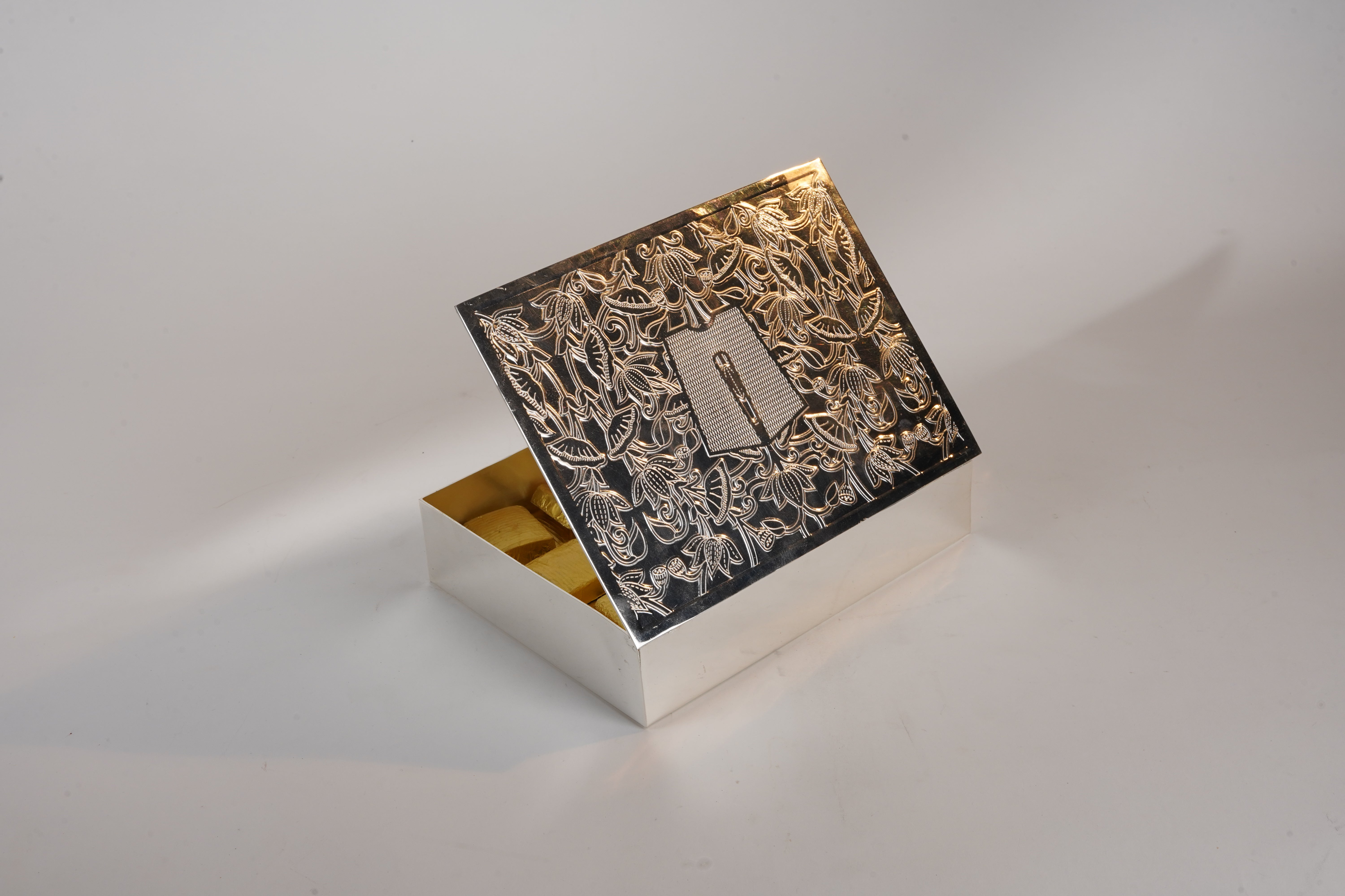 Celebrate tradition with timeless elegance through this 8x6 full brass Vishnu Tilak box, beautifully silver-plated and adorned with intricate floral motifs. The centerpiece features the sacred Tilak symbol, invoking divinity and cultural richness. Ideal for storing sweets, dry fruits, or return gifts, this box transforms into a luxurious keepsake or festive gift. Housed in a plush swede utility box, it’s a perfect pick for weddings, pujas, Diwali hampers, or premium corporate gifting.