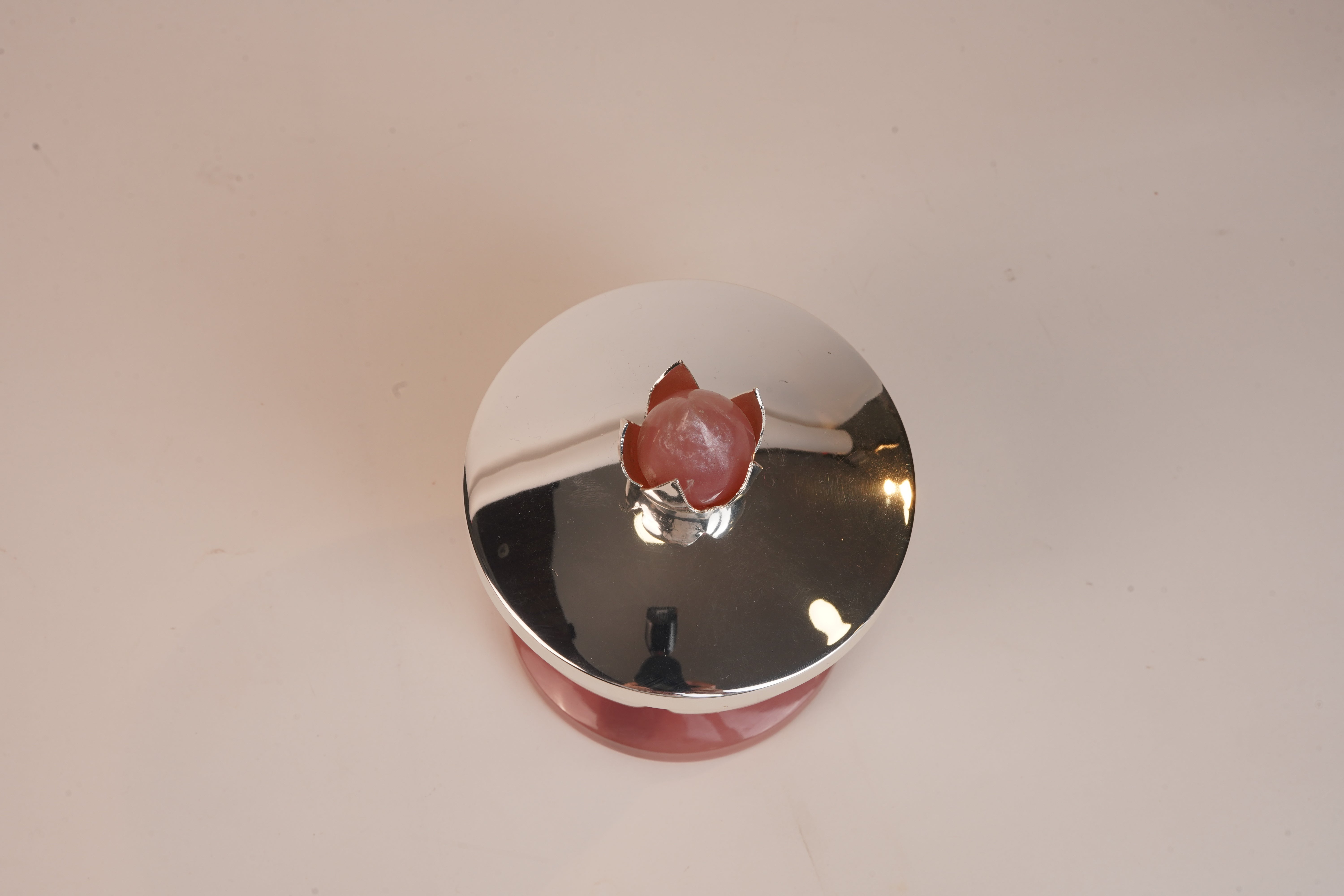Introducing the Round Bowl with Lid from Siansh by Sunita Aggarwal — a perfect fusion of elegance and utility. This silver plated bowl is crafted on durable brass and set atop a sturdy resin base, offering both visual appeal and lasting quality.